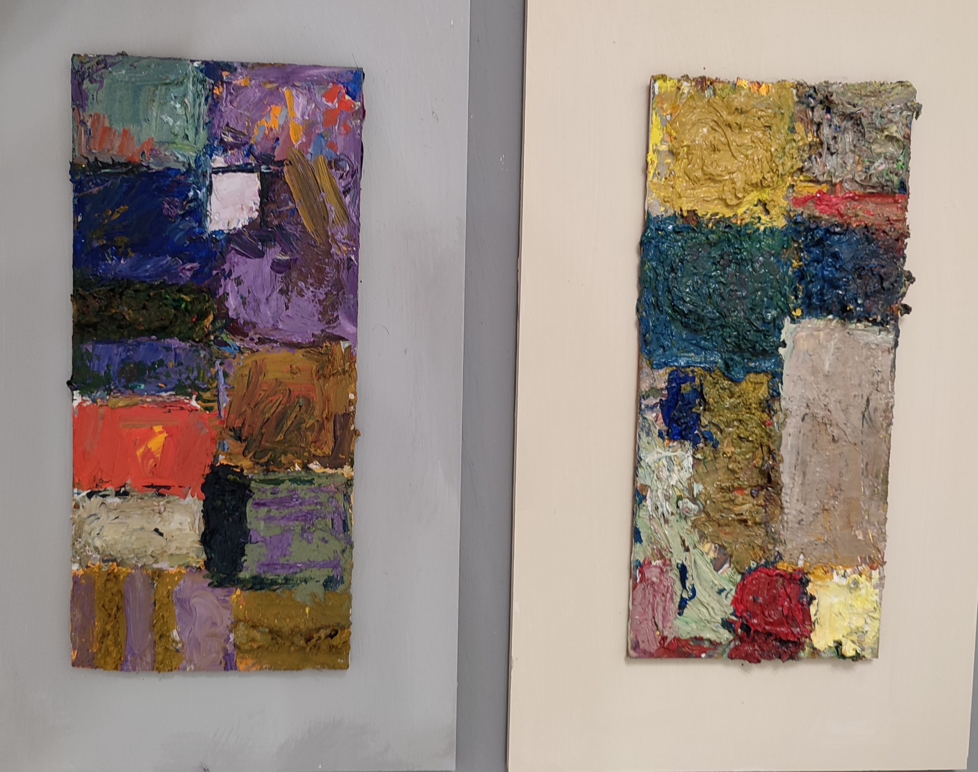 The compositions are of a smaller format painted with oil on hardboard. Have you ever thought about how a rectangle or square affects our lives, just imagine houses, doors, windows, pc screen, exercise book, notebook, piece of paper, textbooks, how houses are organized in the street, city streets, etc. Geometry is all around us.......